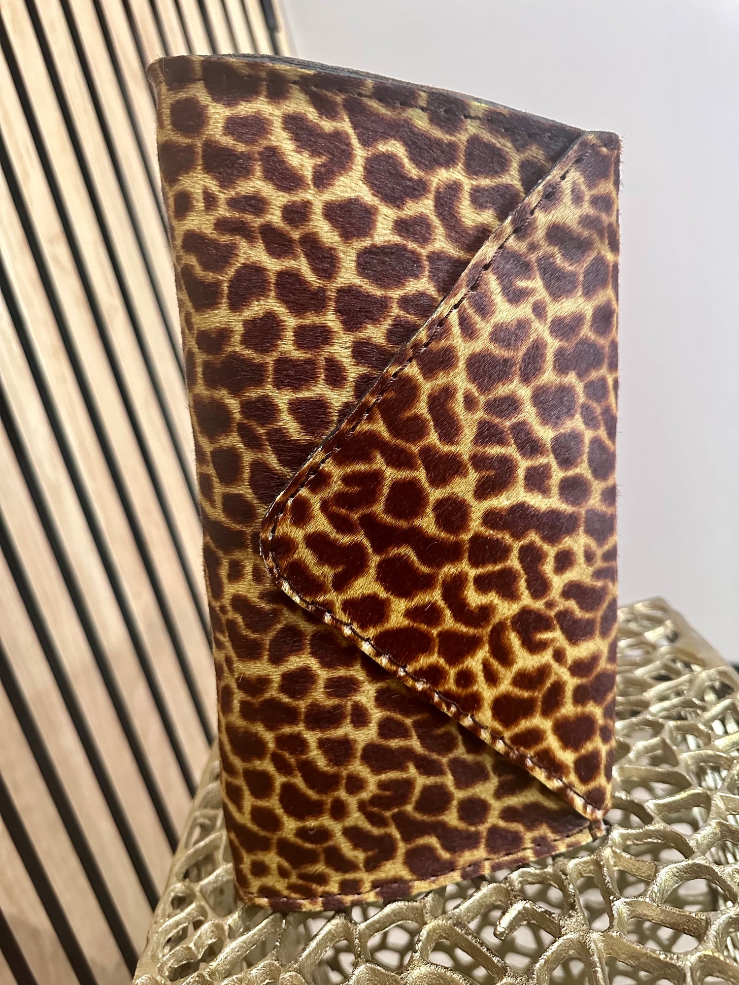 Add a touch of luxury to your ensemble with this animal print clutch, expertly handmade in Puerto Rico. Its radiant finish and artisanal craftsmanship make it an eye-catching accessory for any occasion. Perfectly sized to hold your essentials, this clutch blends elegance with authentic local artistry, ensuring you stand out with every event.