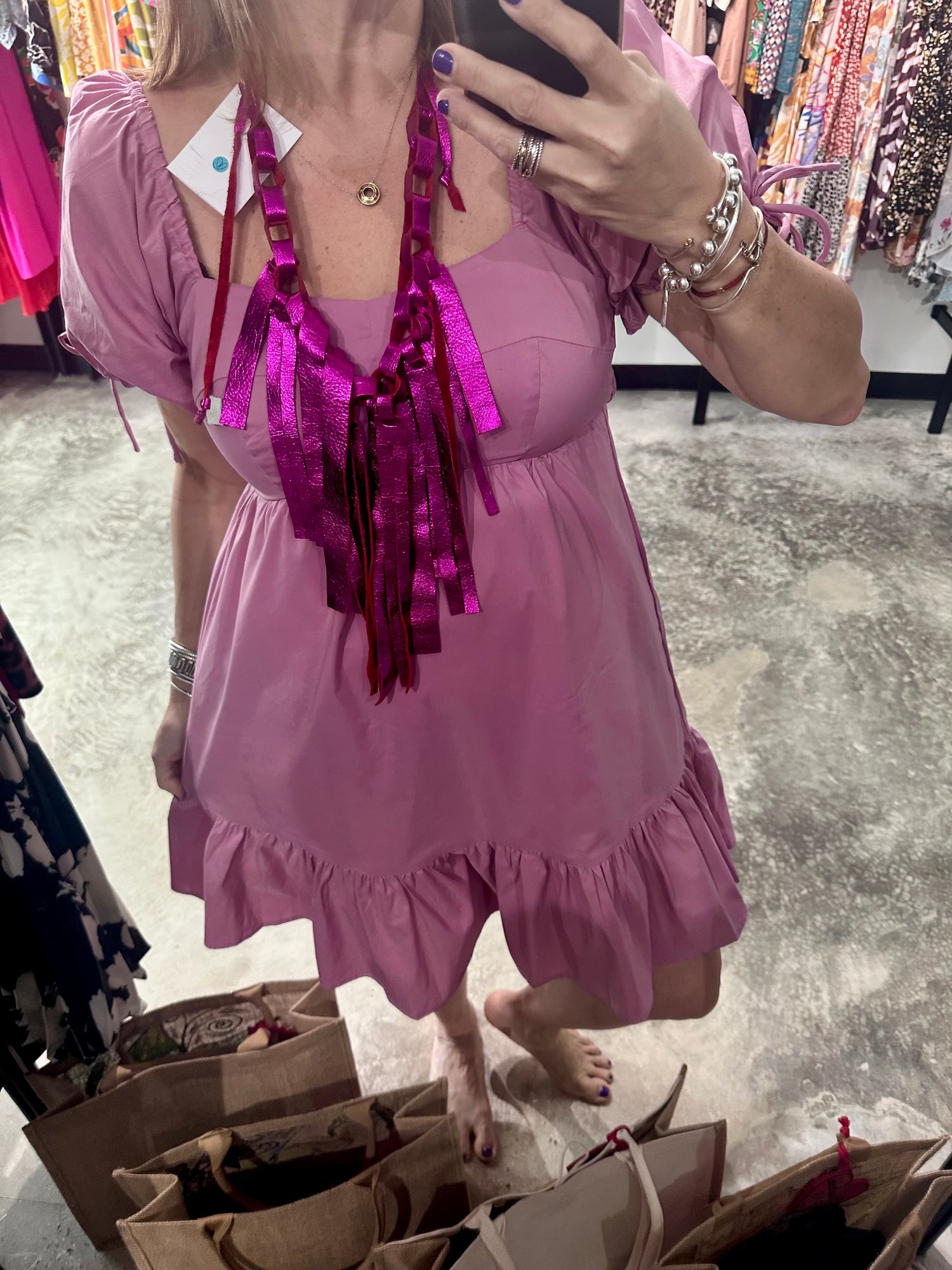 Unleash your inner fashionista with our Babydoll Short Dress. The dreamy mauve color and delicate puff sleeves add a touch of elegance, while the smocked bodice in the back ensures a flattering fit. Made from a soft cotton-polyester blend, this dress is both comfortable and stylish. Perfect for any occasion, it's a must-have for your wardrobe.