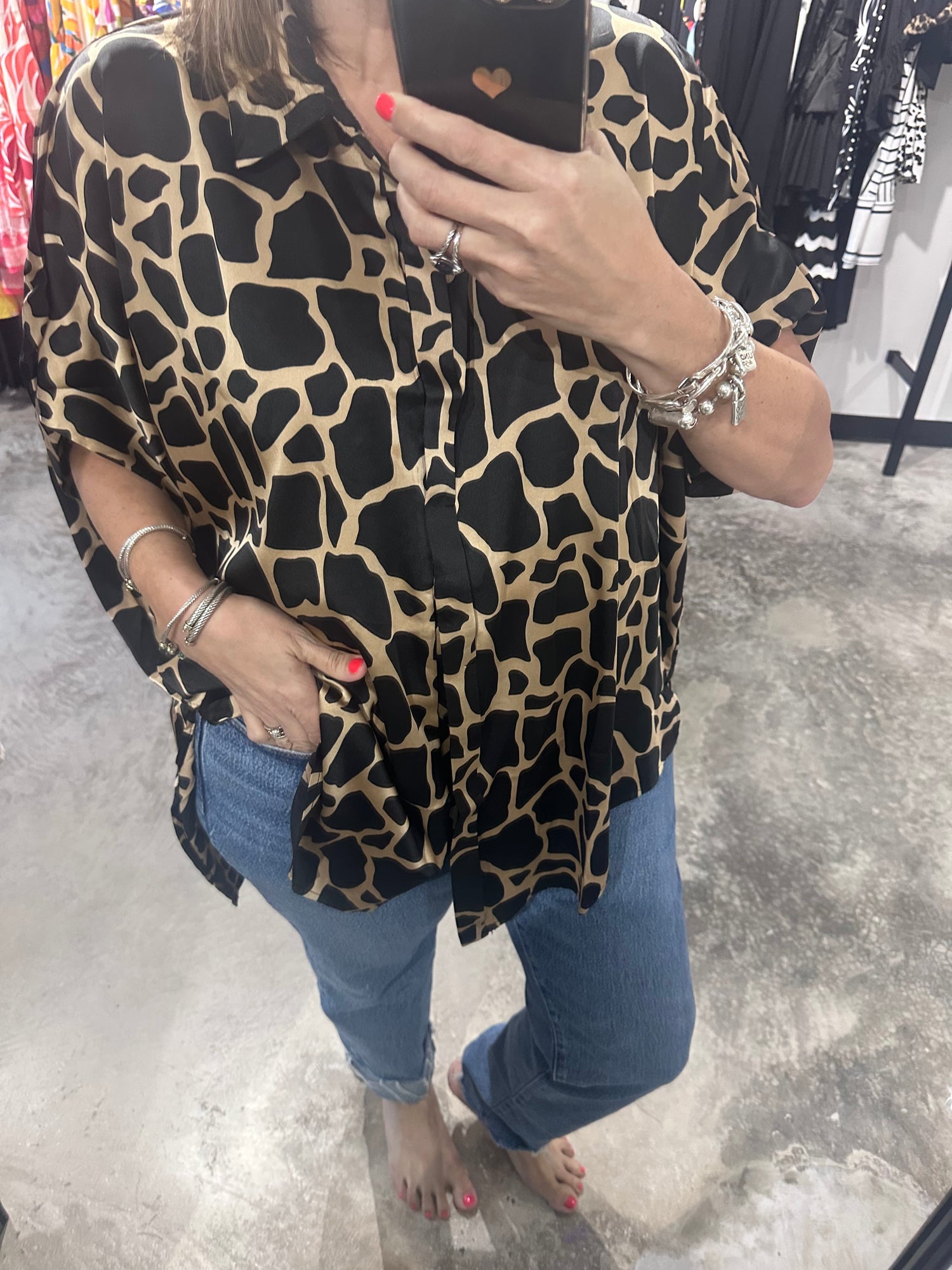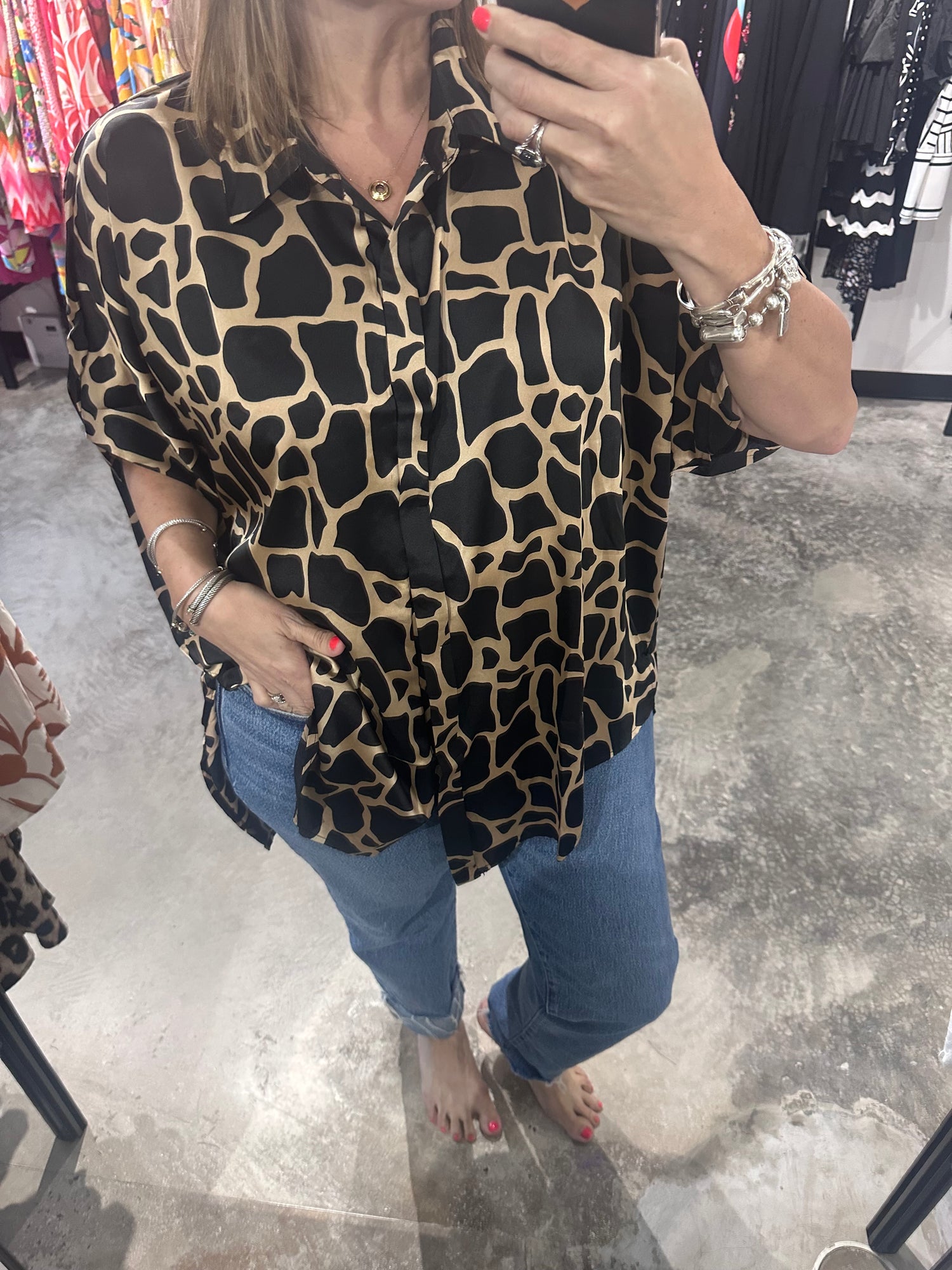This Curvy Black Mix Top offers a flattering fit with its button-down front and short sleeves, perfect for warm days. The stylish high-low hem adds a modern touch, enhancing your silhouette effortlessly. Crafted in a versatile black mix, it pairs seamlessly with any outfit, making it a must-have for your wardrobe. Comfortable, chic, and easy to style, it’s designed to celebrate your curves with confidence.