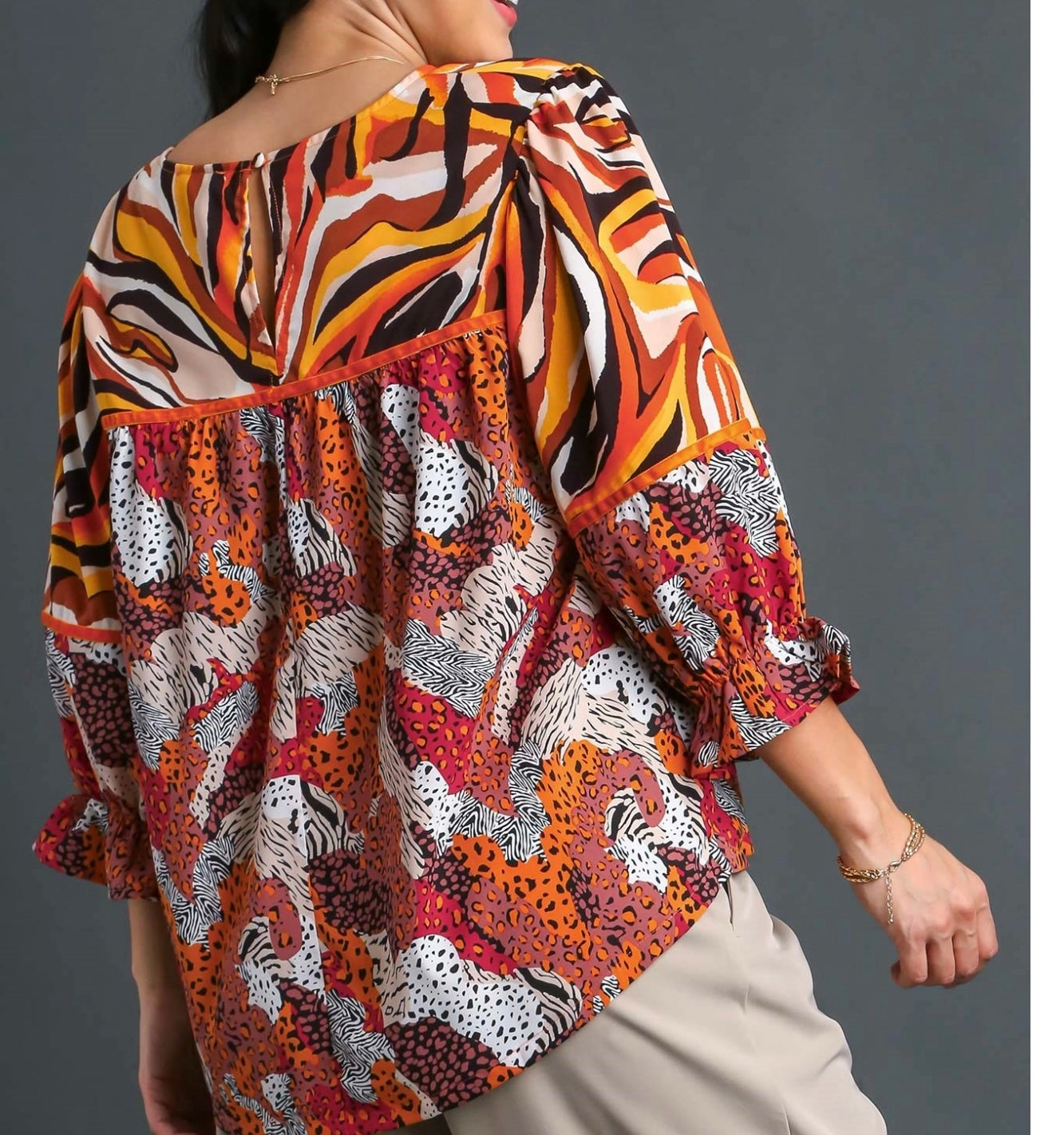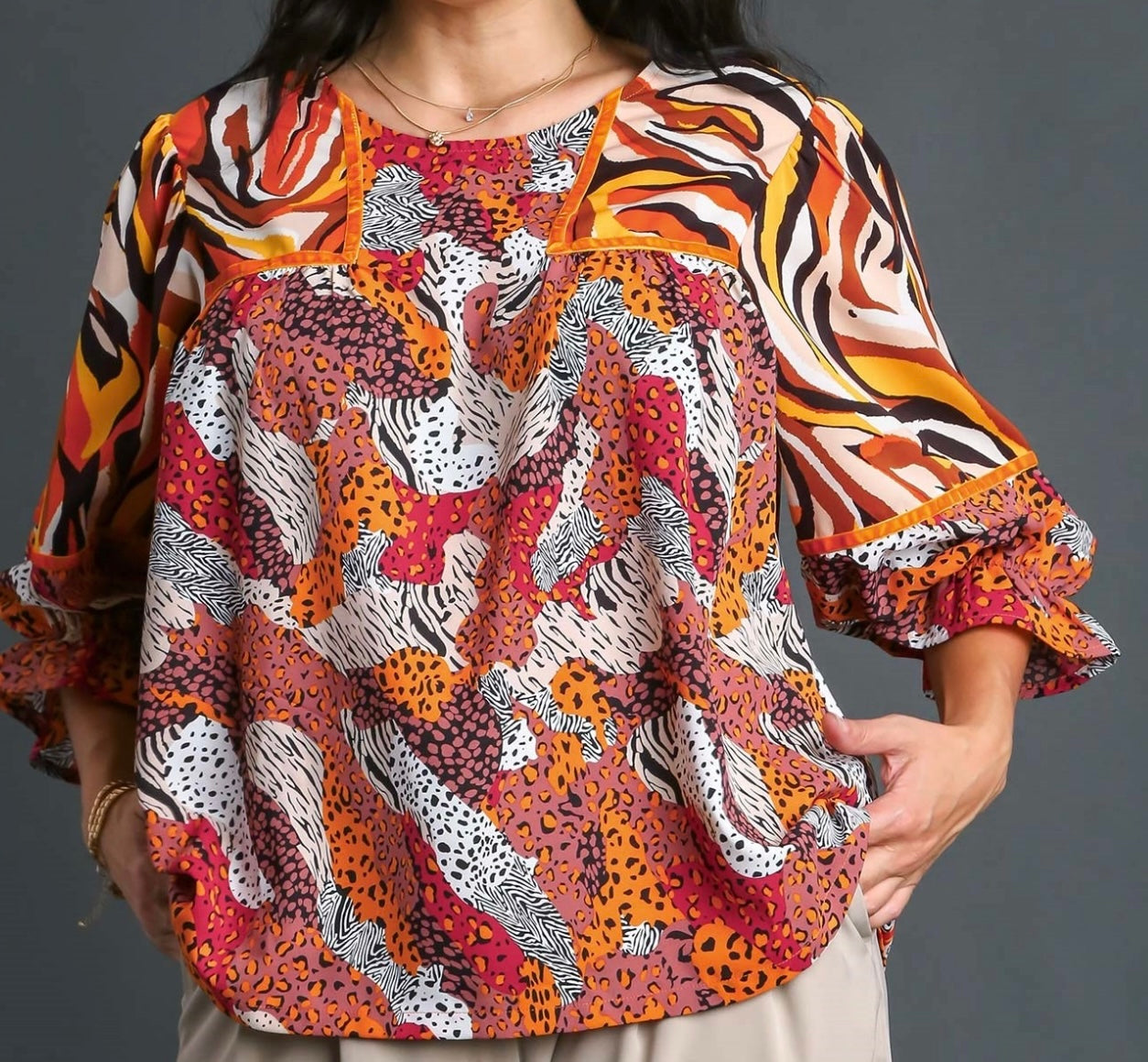 Discover the perfect blend of style and comfort with this brown mix animal print top. The flowing fabric moves with you, creating an elegant silhouette that flatters your figure while the long sleeves add sophistication to any outfit. This versatile piece works beautifully for work, weekend adventures, or casual gatherings. The rich brown tones and striking animal print give you that fashion-forward edge without sacrificing comfort. Invest in a top that makes you feel confident, beautiful, and ready to take on the day.