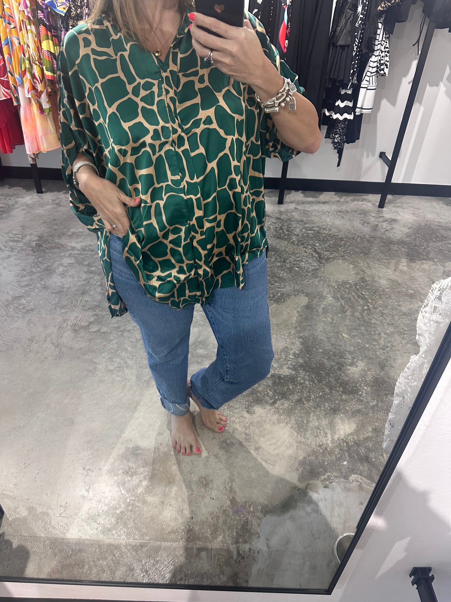 This Curvy Green Mix Top offers a flattering fit with its button-down front and short sleeves, perfect for warm days. The stylish high-low hem adds a modern touch, enhancing your silhouette effortlessly. Crafted in a versatile black mix, it pairs seamlessly with any outfit, making it a must-have for your wardrobe. Comfortable, chic, and easy to style, it’s designed to celebrate your curves with confidence.