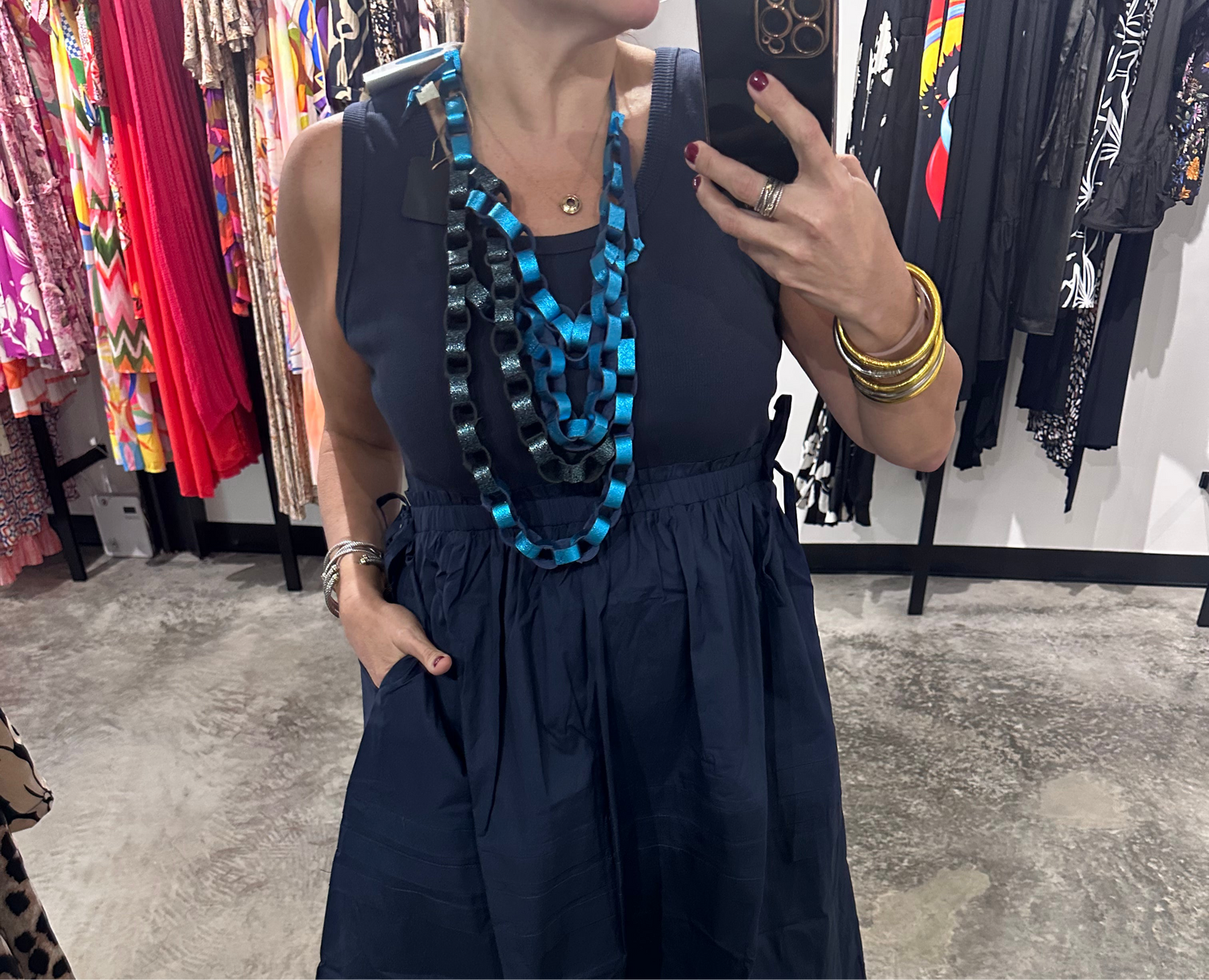 Elevate your style with our Turquoise Layer Leather Necklace, handcrafted with love in Puerto Rico. Stand out with unique pieces of multi-colored layers that are adjustable to fit your desired look. Make a statement with this one-of-a-kind accessory!