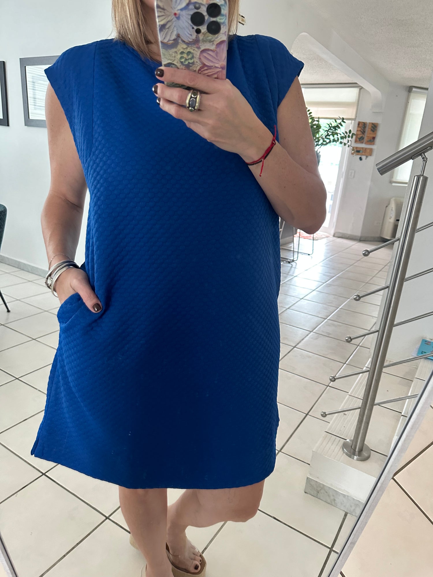 Transform your wardrobe with our Embossing Texture Short Dress! Featuring a U-neck and stylish slay sleeves, this lightweight dress also boasts convenient side pockets. Made with 95% polyester and 5% spandex, this dress is both comfortable and chic, making it a must-have for any fashion-forward individual. Upgrade your style game today!