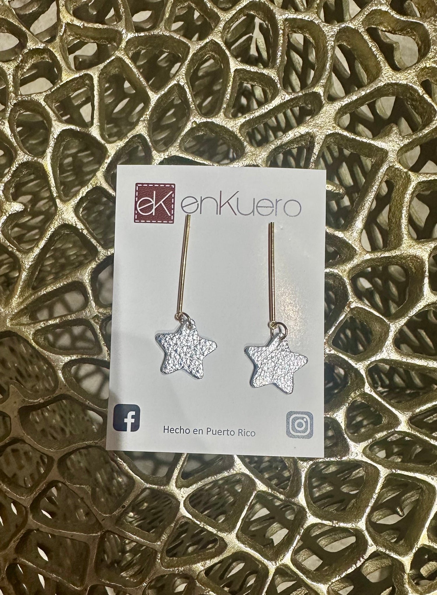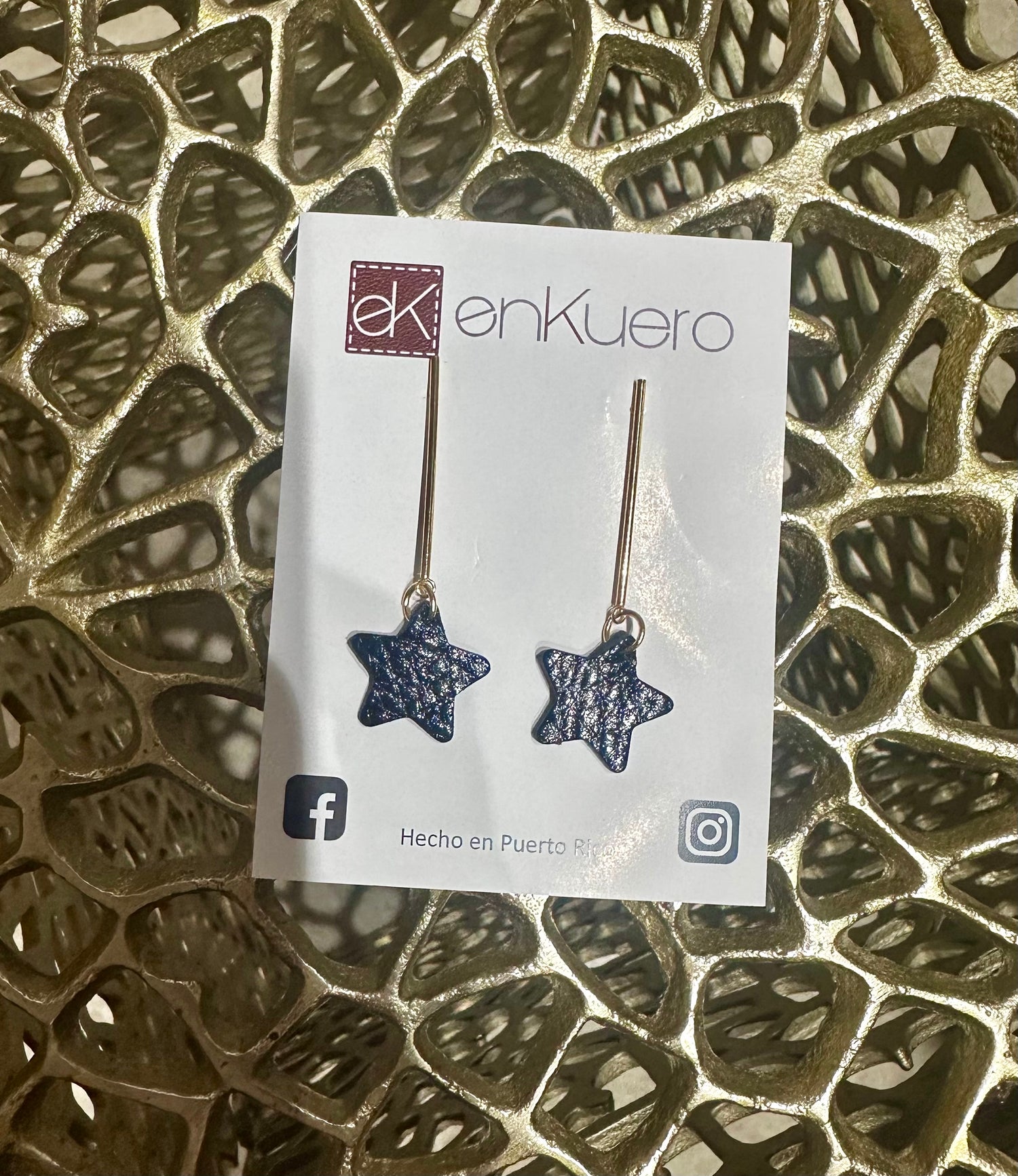 Shine bright with these whimsical gold drop earrings by EnKuero, a Puerto Rico treasure. The star-shaped leather accent adds a playful pop of texture that sets these beauties apart from your typical earring drawer. Lightweight and versatile, they're equally at home with your weekend casual look or dressed up for a night out. Because life's too short for boring jewelry—let your ears have all the fun.