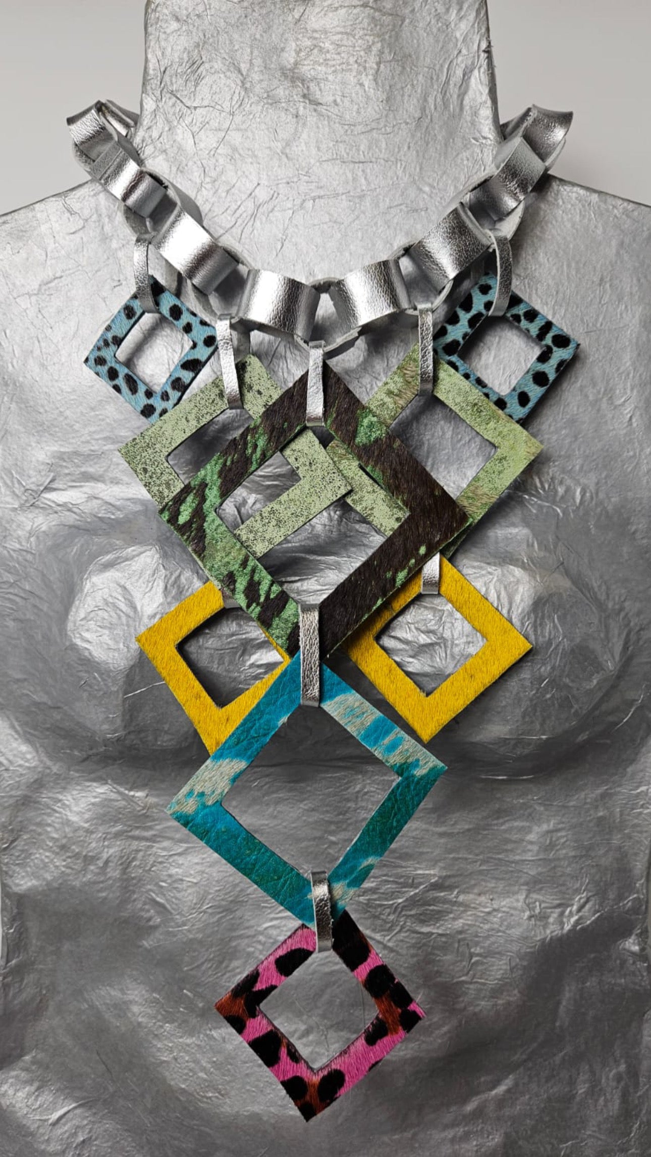 Elevate your style with our Geometric Layer Multi Leather Necklace, handcrafted with love in Puerto Rico. Stand out with unique pieces of multi-colored layers that are adjustable to fit your desired look. Make a statement with this one-of-a-kind accessory!
