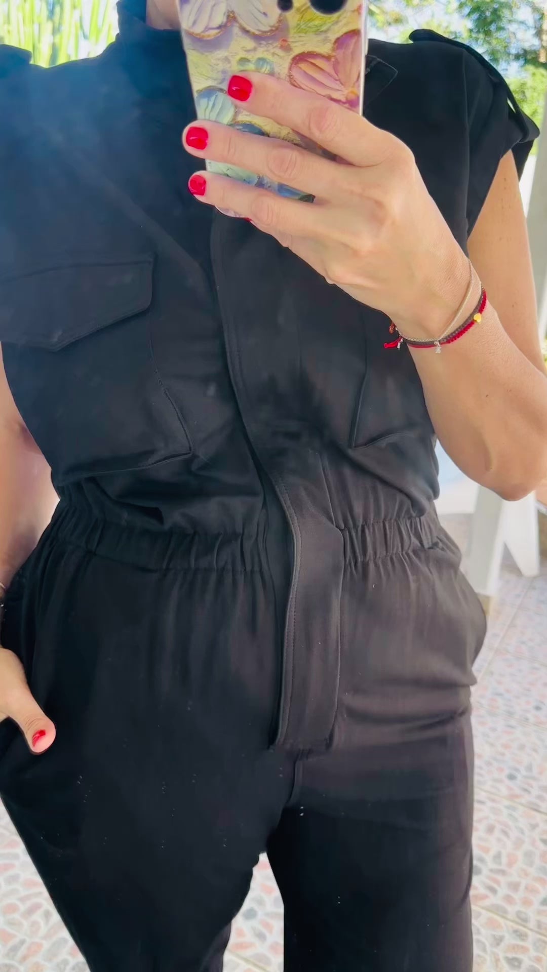 Elevate your wardrobe with our High Neck Sleeveless Jumpsuit in Black! Made with 95% Cotton and 5% Spandex, this jumpsuit offers comfort and style. The folded sleeves and chest flap pockets add an extra touch of class, while the elastic waist and front zipper closure provide a comfortable, jogger design. Also available in Royal Blue (SKU# 6906).