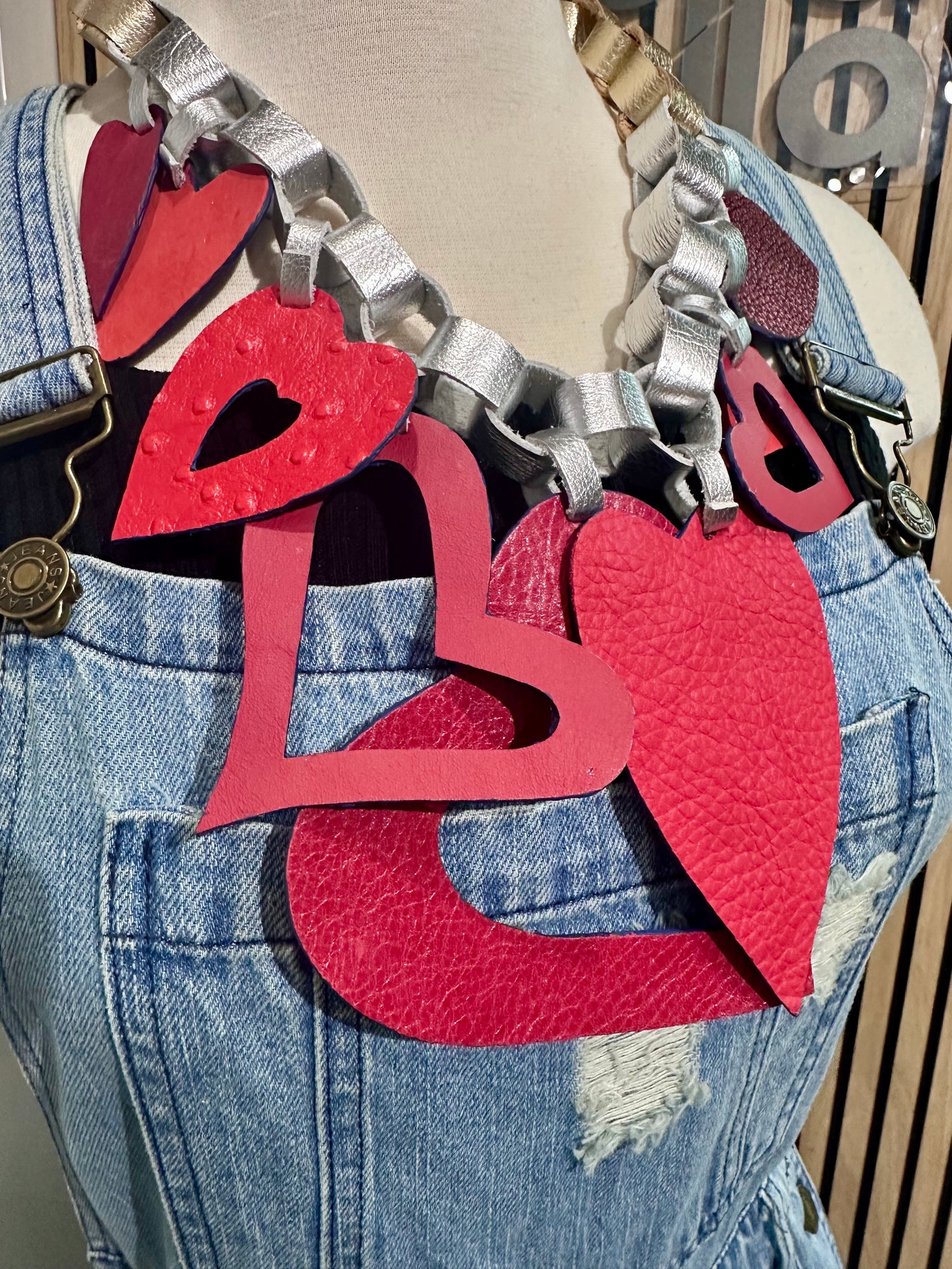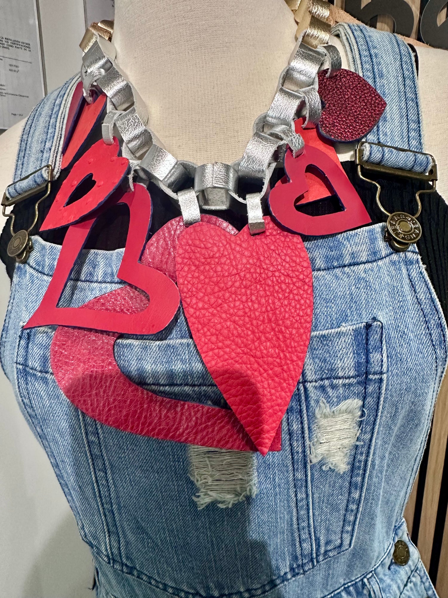 Indulge in the beauty of this handcrafted Red & Blue Heart Leather Necklace. The heart design will make a statement wherever you go, and the reversible piece allows you to switch up your look. With an adjustable gold & silver necklace, this unique piece is perfect for any occasion. Made with love in Puerto Rico.