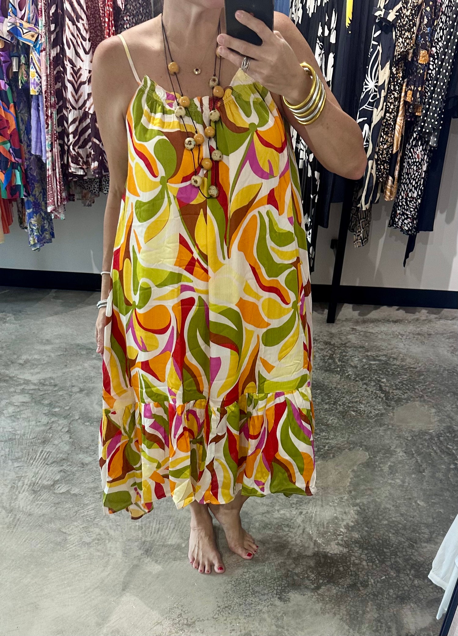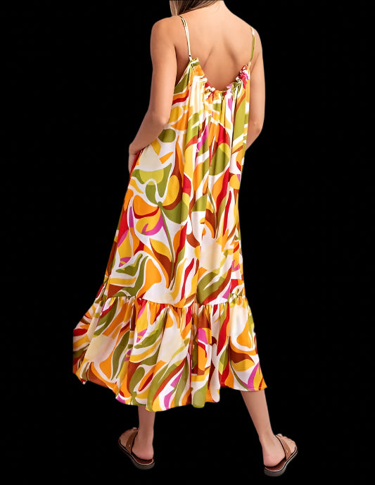 Elevate your summer wardrobe with the Avocado Loose Fit Midi Dress. Featuring delicate spaghetti straps and a flattering ruffle scoop neck, this dress offers adjustable straps for a perfect fit. Its loose silhouette ensures comfort and effortless style, while the midi length adds a touch of elegance. Perfect for warm days and casual outings, this dress in a fresh Avocado Mix shade brings a vibrant, breezy charm to your look. Order now to secure this versatile and chic addition to your collection.