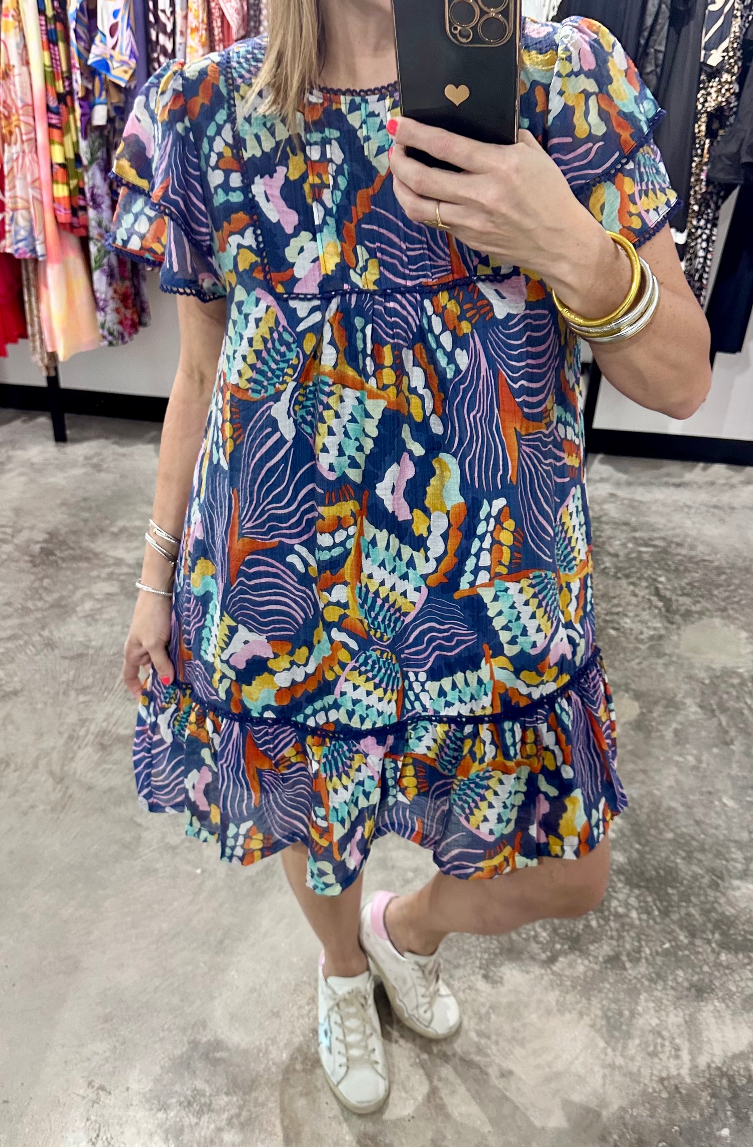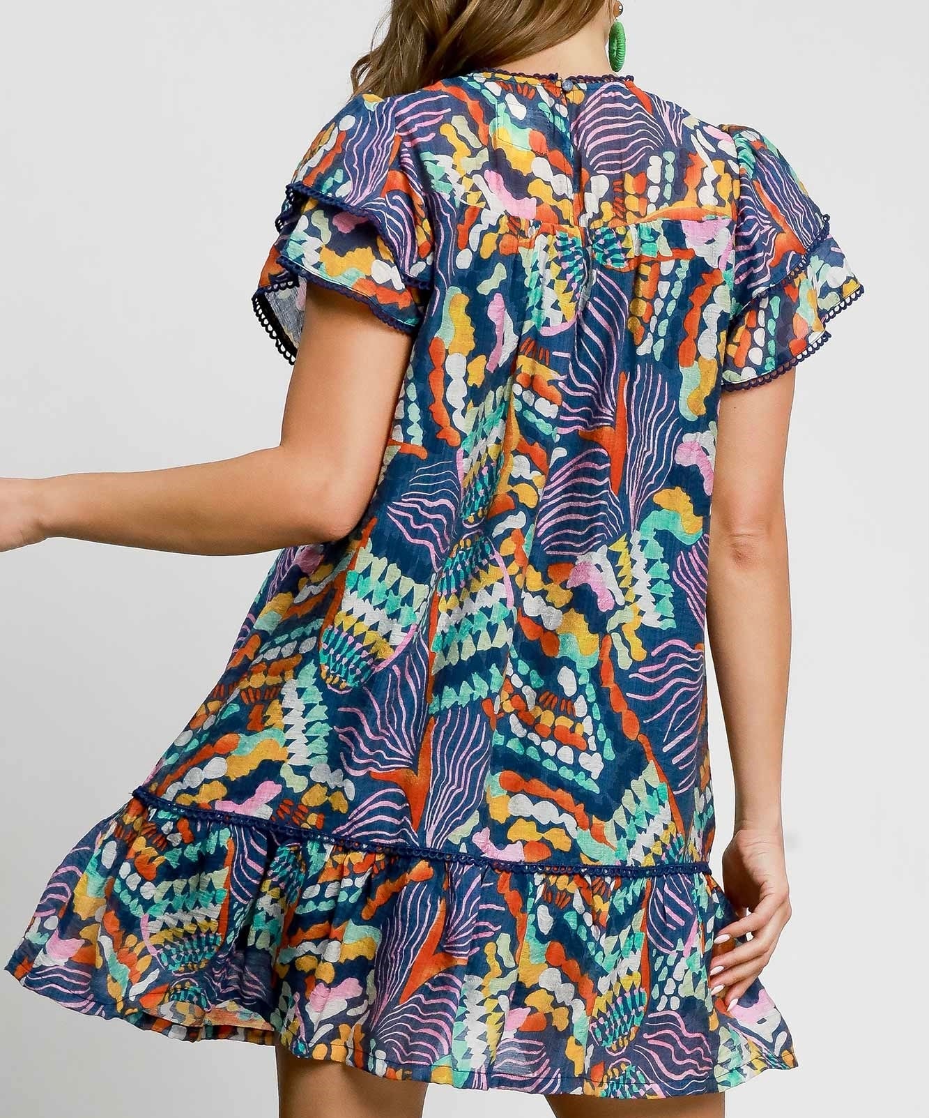 Embrace effortless style with this vibrant boho babydoll dress, designed for a relaxed fit that moves with you. Featuring delicate ruffle cap sleeves and a flattering round neckline, it combines comfort and charm. Crafted from a soft blend of 83% rayon and 17% nylon in a rich navy mix, this dress is perfect for warm days and casual outings. Order now to add a touch of bohemian elegance to your wardrobe.