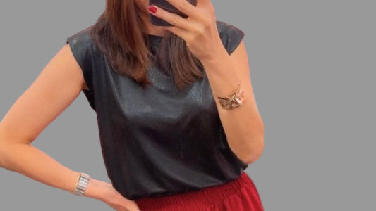 Add a radiant edge to your basics with this metallic black tee. Made from a soft, stretchy blend of 95% polyester and 5% spandex, it provides all-day comfort and a sleek fit. The classic crew neck and tee silhouette make it easy to style for any occasion. Pre-order now to secure this standout piece for your wardrobe.