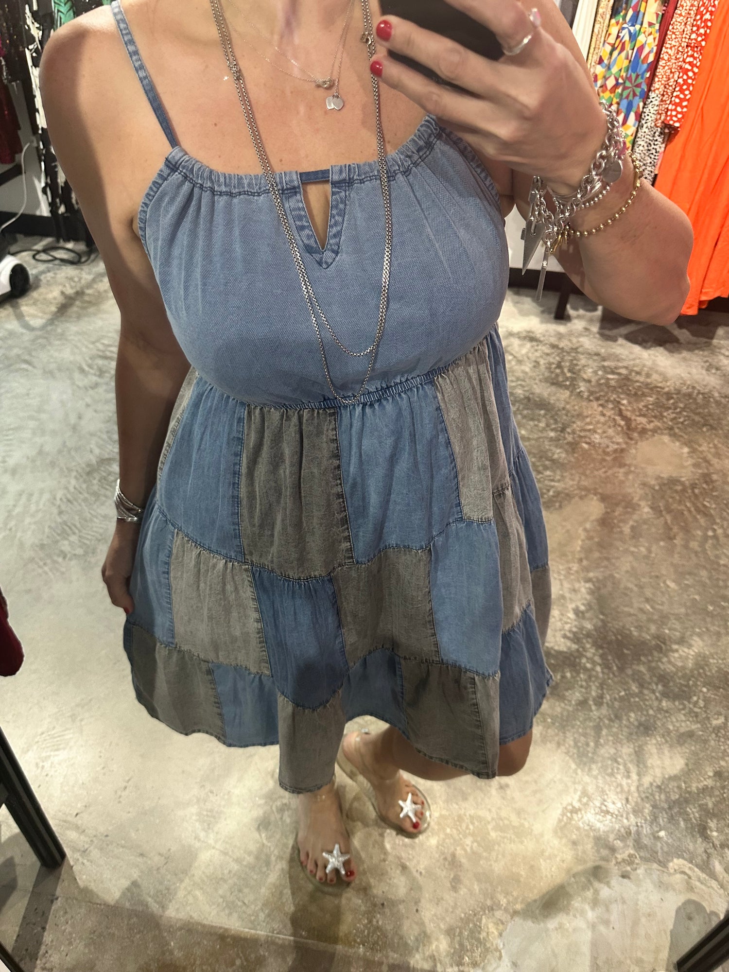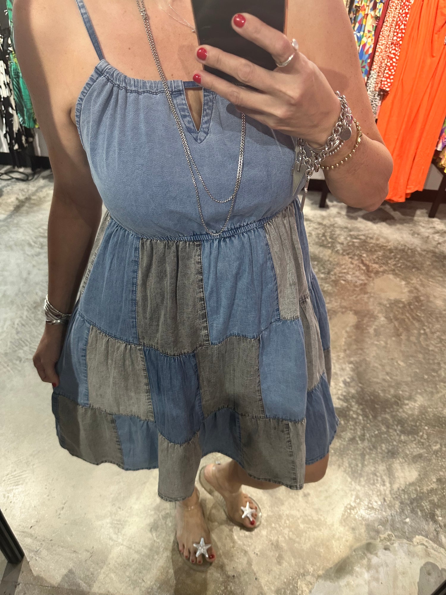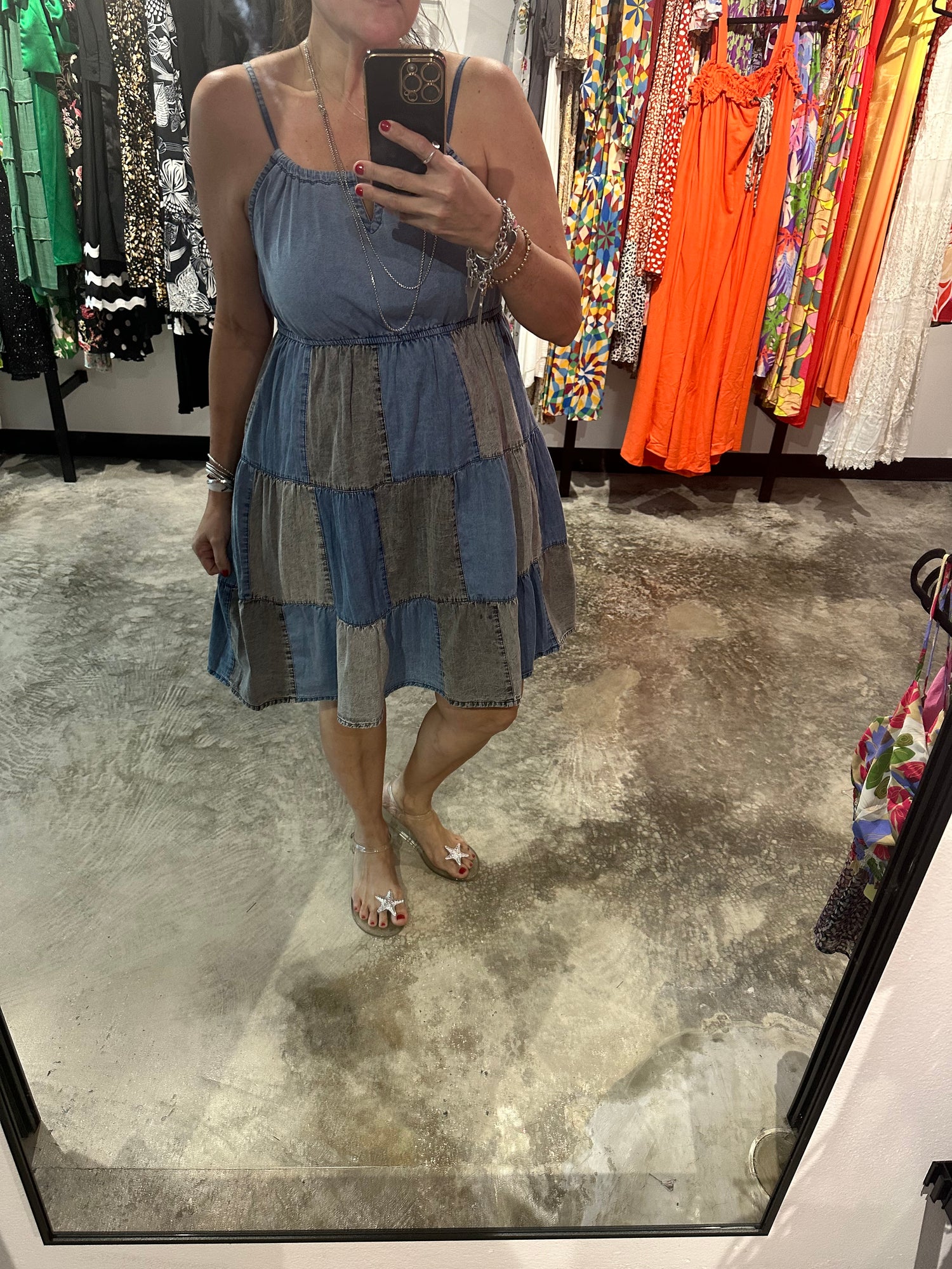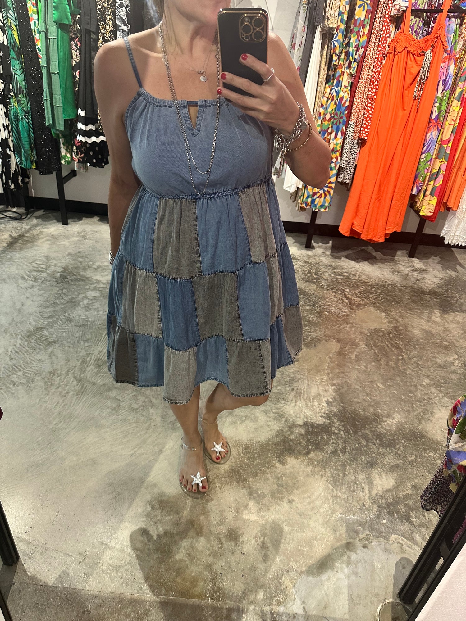 Effortlessly chic and stylish, our Patchwork Denim Short Dress is a must-have for any fashion-forward individual. The halter neck design and patchwork detail add a unique touch, while adjustable ties ensure a perfect fit. Embrace your individuality and make a statement with this versatile and comfortable dress.
