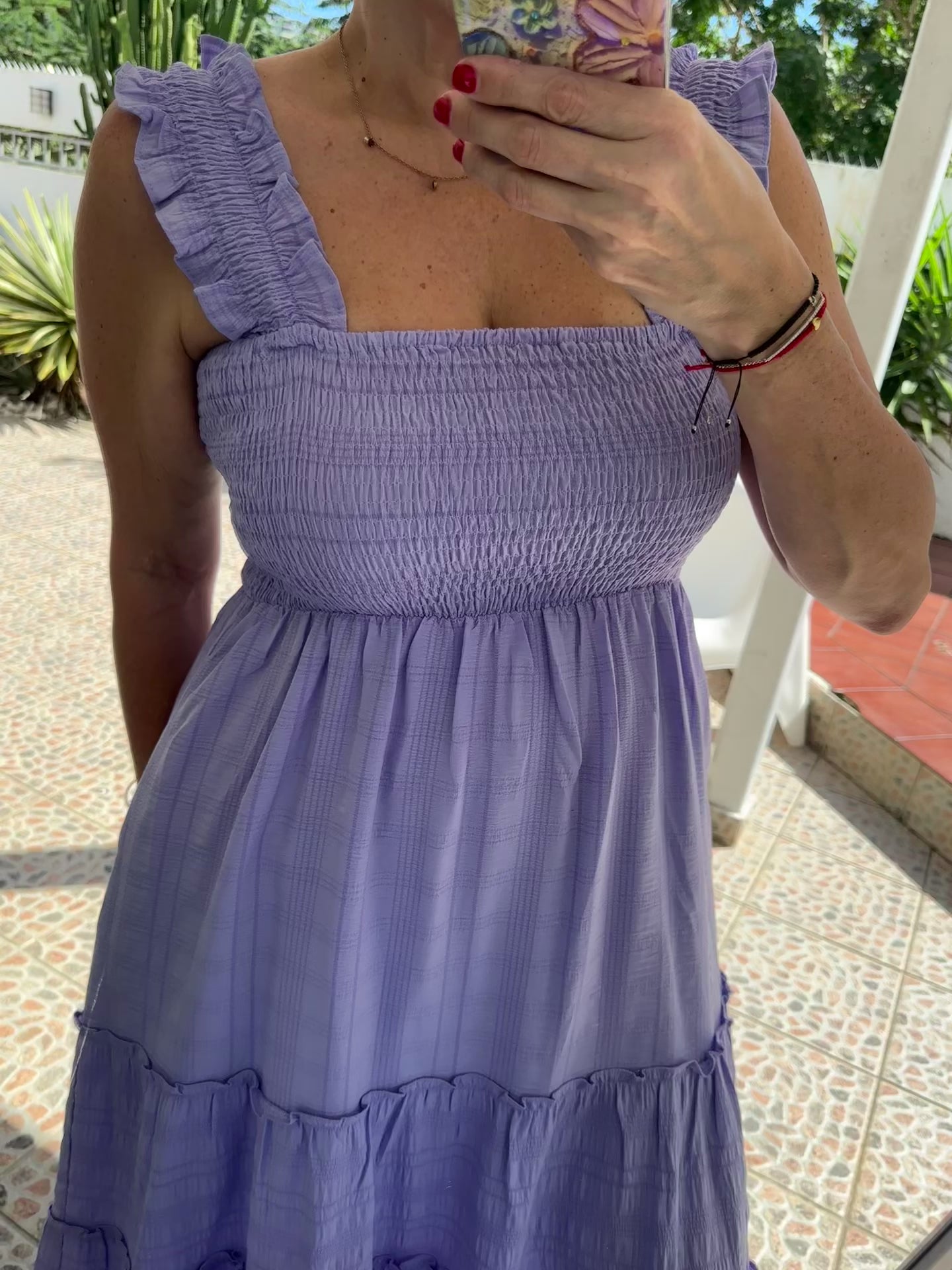 Effortlessly chic and comfortable, our Smocked Ruffle Midi Dress is a must-have for any wardrobe. The smocked bodice creates a flattering silhouette, while the ruffle straps add a touch of femininity. Available in a beautiful lavender hue, this dress is made with a soft and stretchy fabric for a perfect fit. True to size and perfect for any occasion!