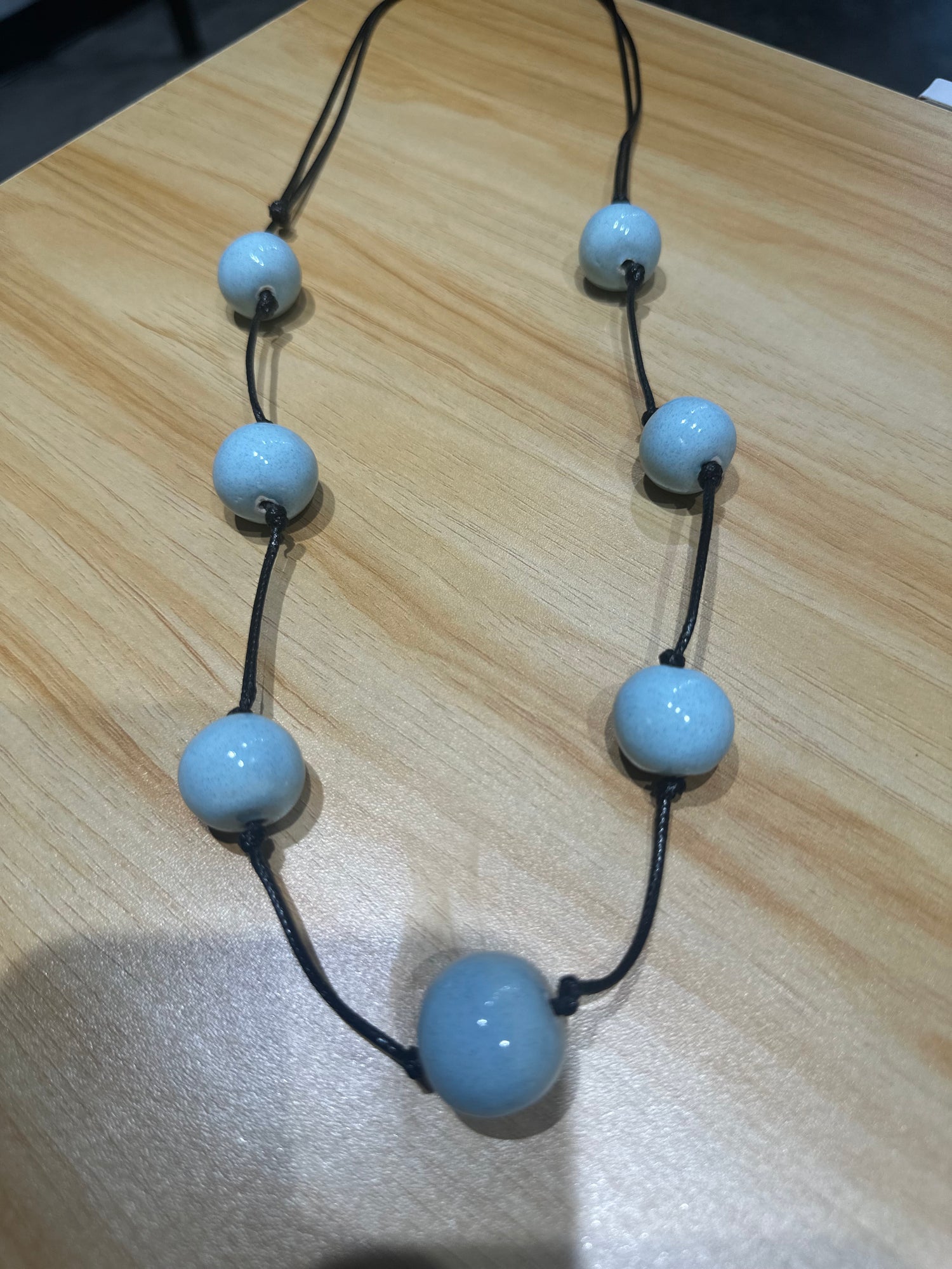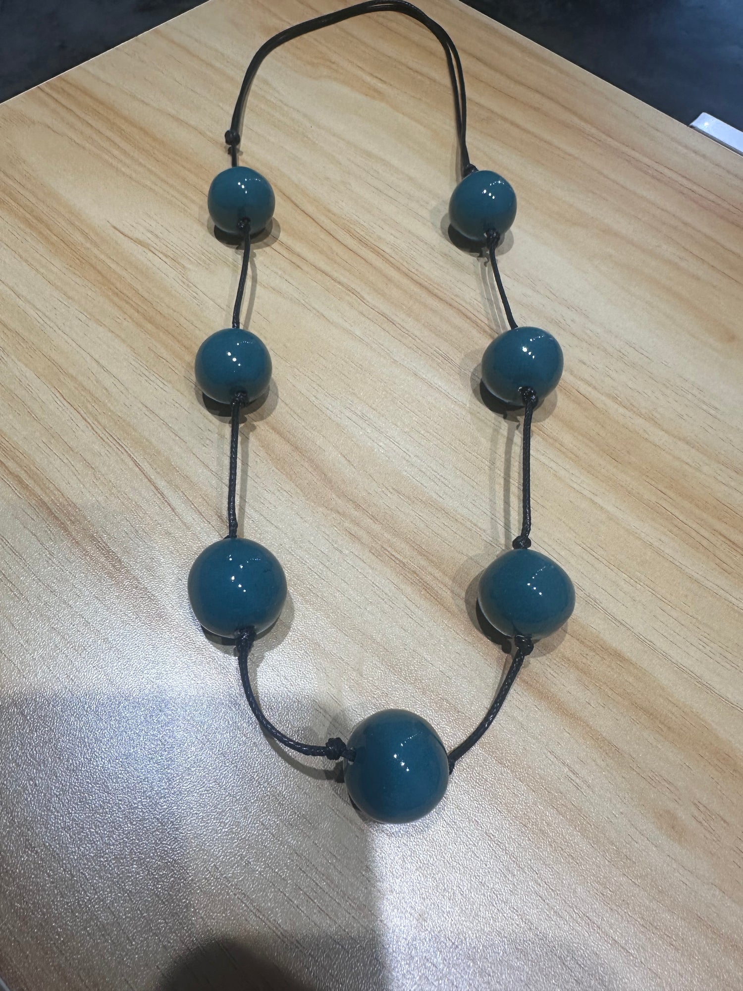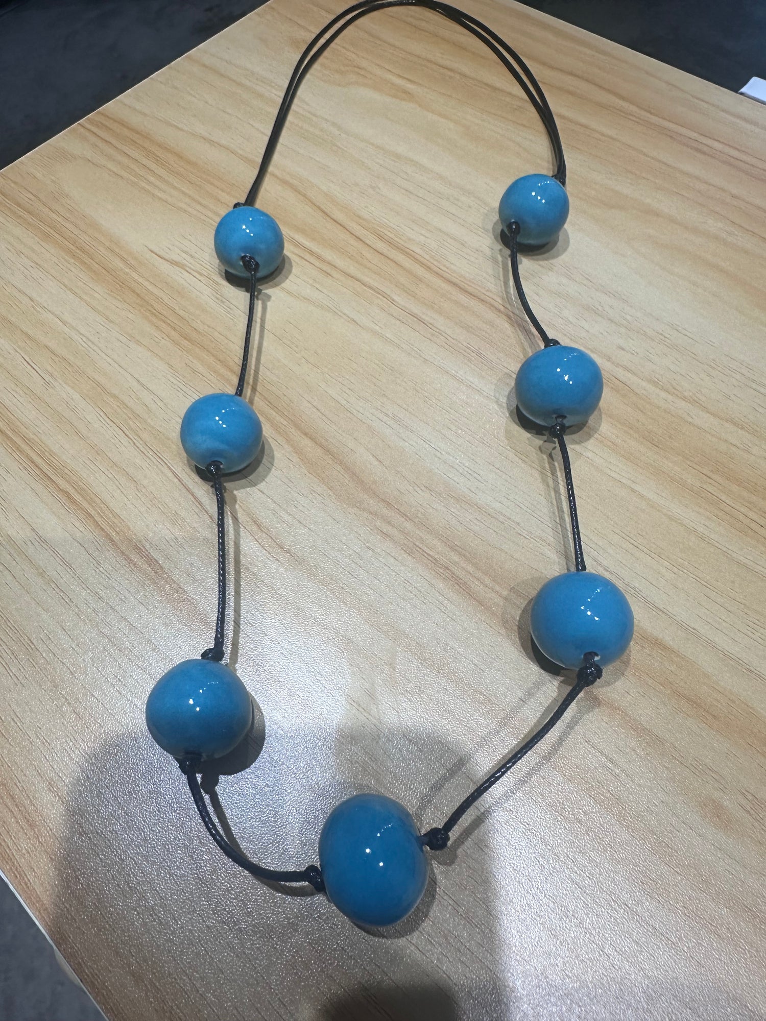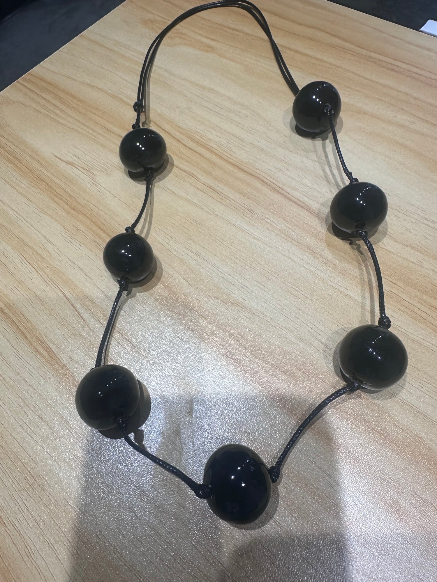 Introducing our stunning String Balls Necklace! Made with black leather string, this adjustable necklace comes in a variety of colors. Create your own unique combinations with each piece sold separately. Make a statement with our one-of-a-kind necklace!
