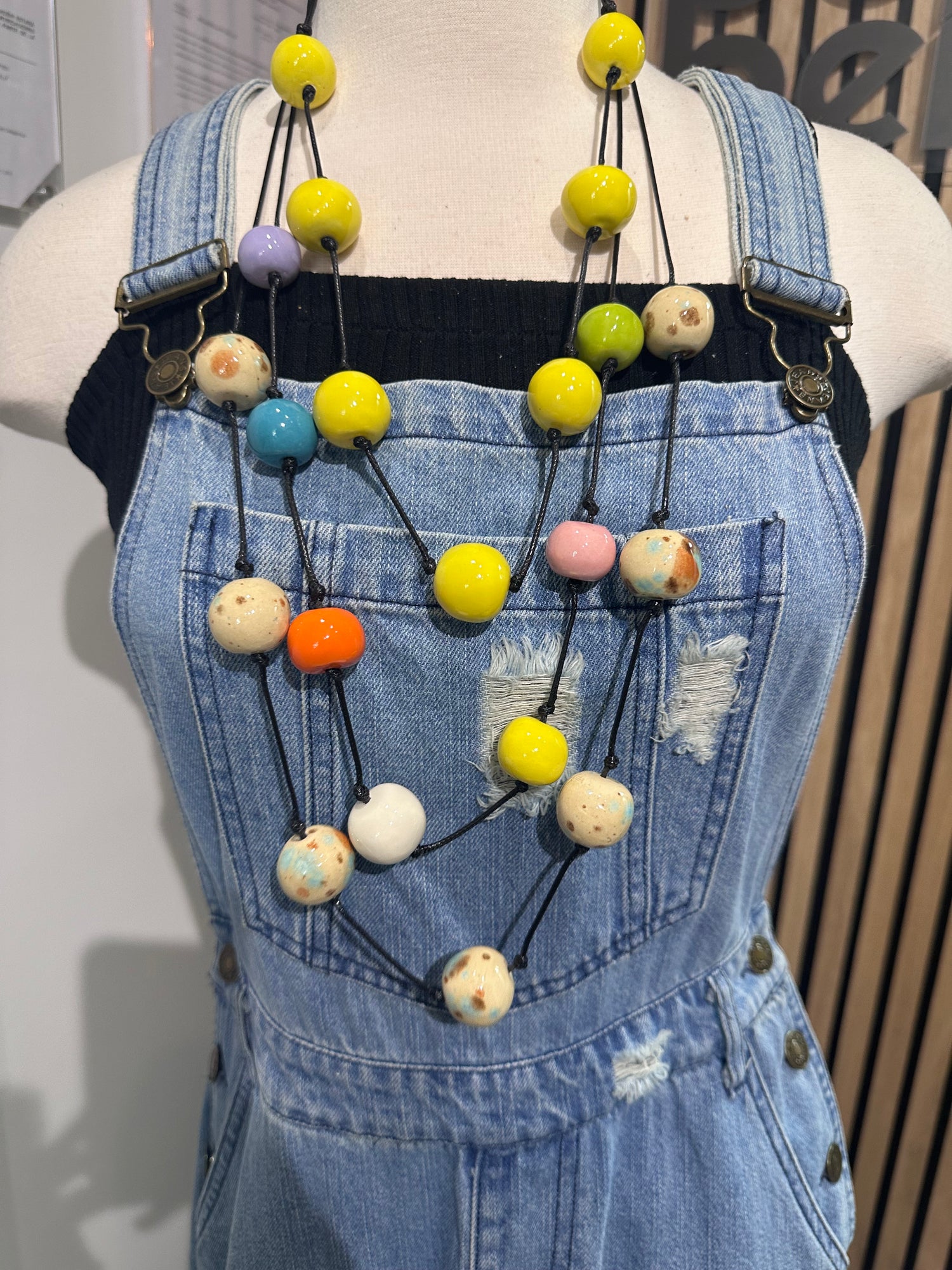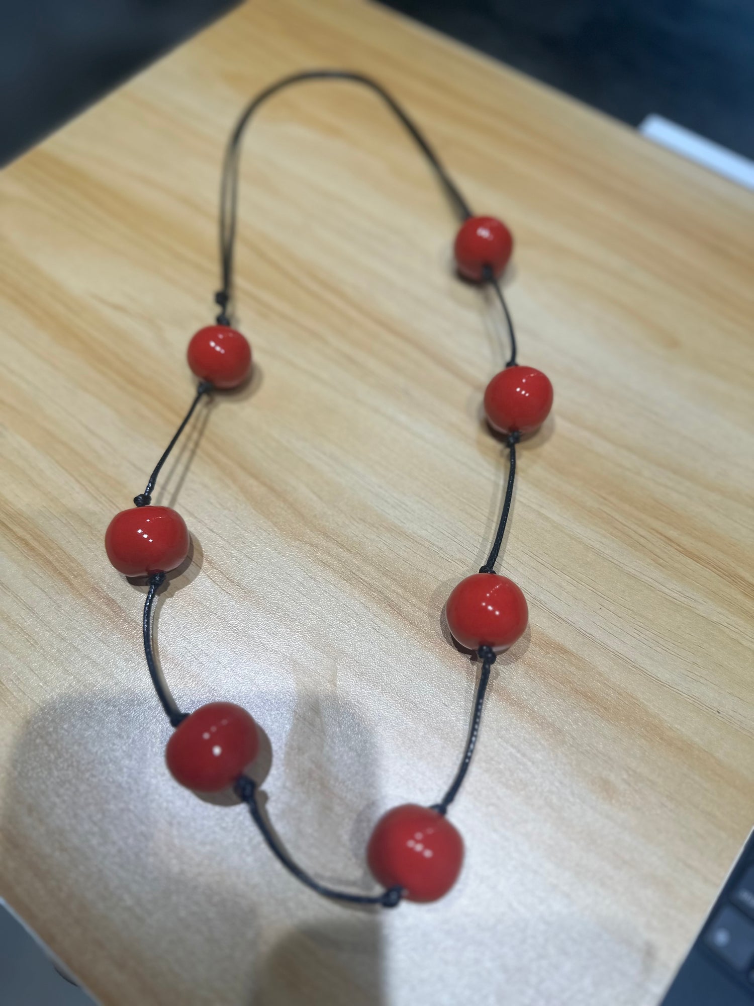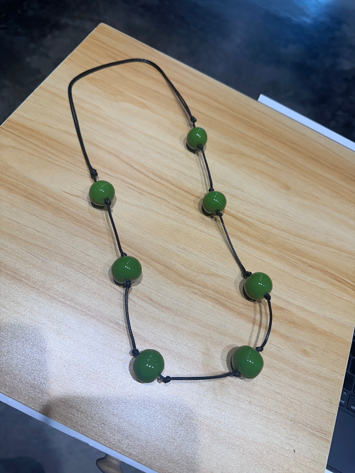 Introducing our stunning String Balls Necklace! Made with black leather string, this adjustable necklace comes in a variety of colors. Create your own unique combinations with each piece sold separately. Make a statement with our one-of-a-kind necklace!