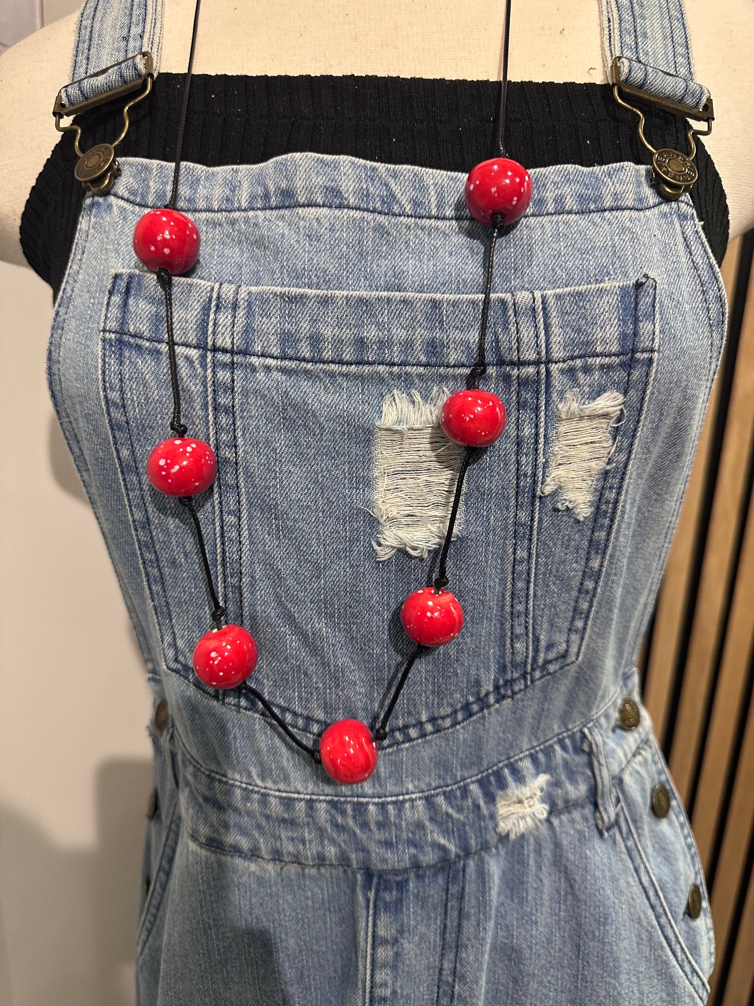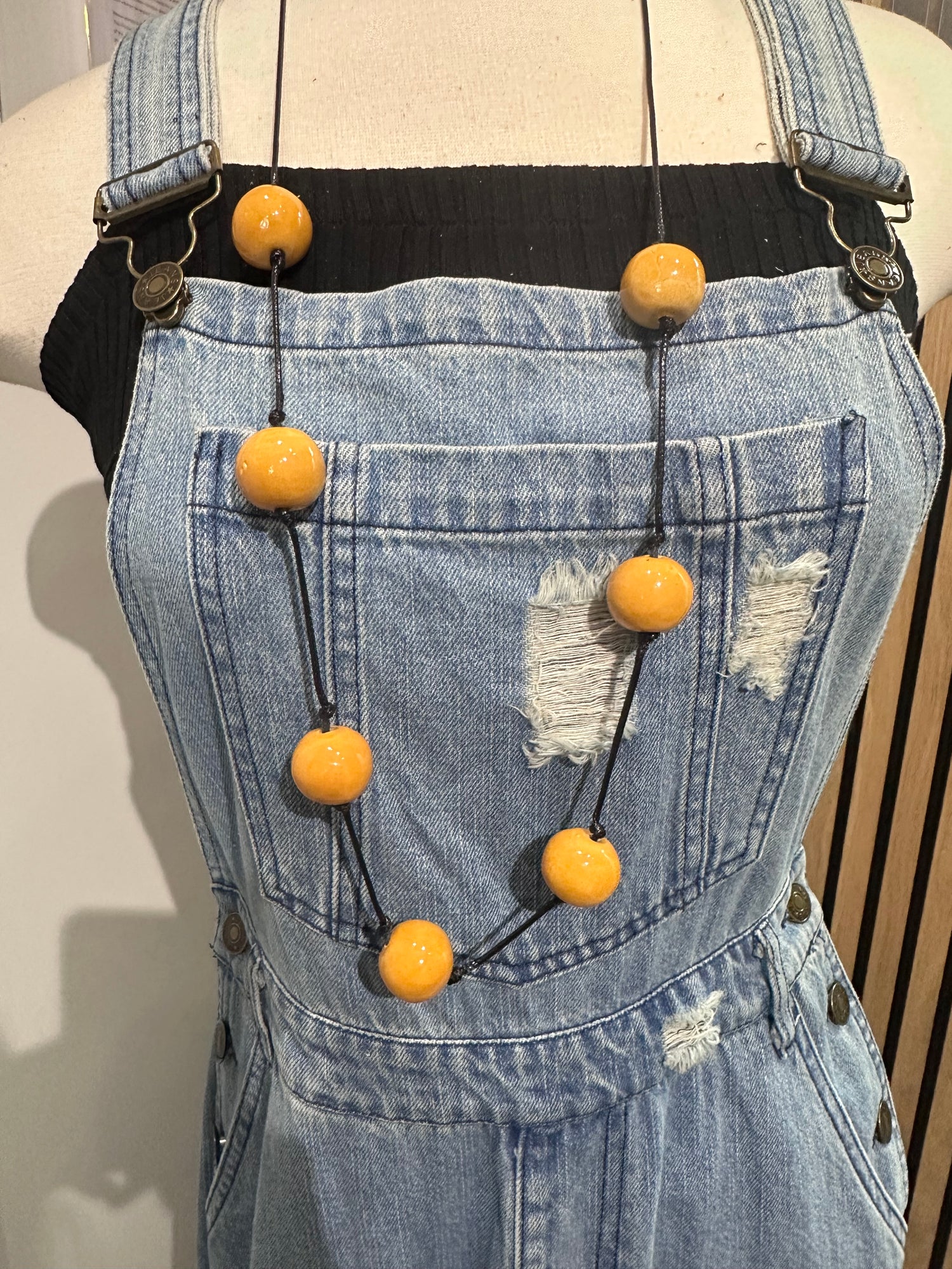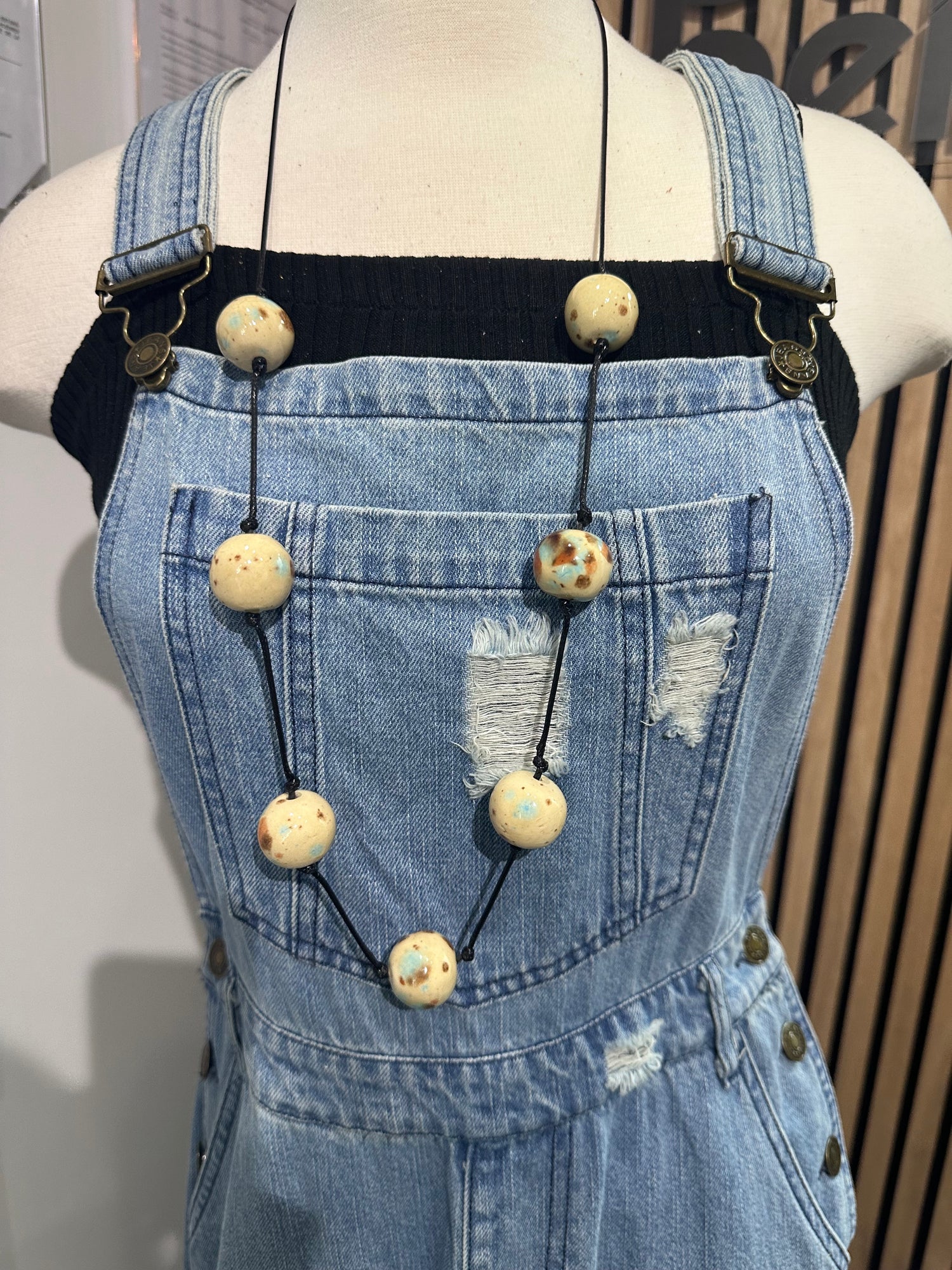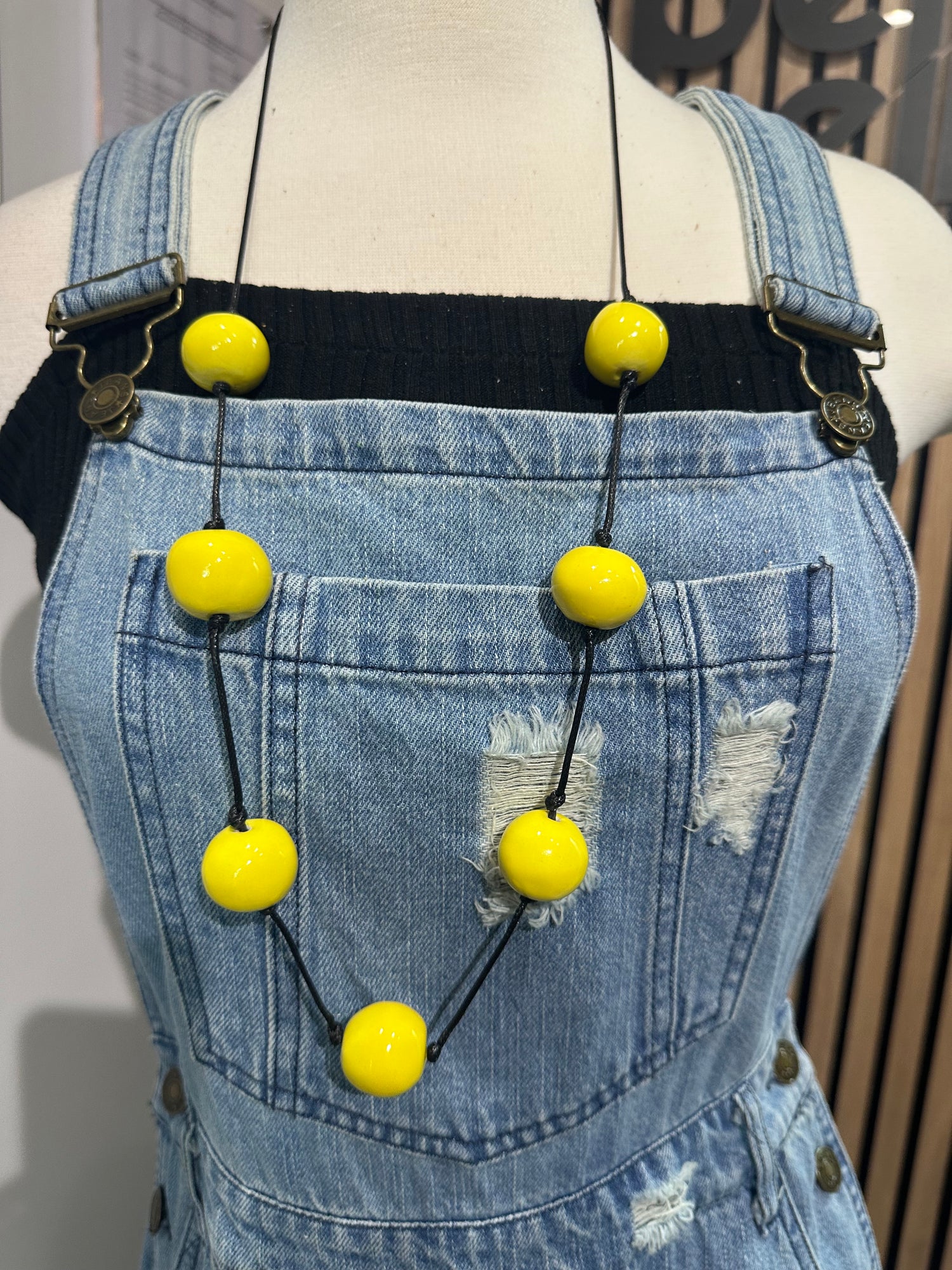 Introducing our stunning String Balls Necklace! Made with black leather string, this adjustable necklace comes in a variety of colors. Create your own unique combinations with each piece sold separately. Make a statement with our one-of-a-kind necklace!